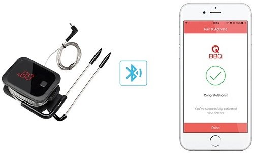 Professional chefs know that traditional baking and smoking are not the only ways to prepare food on embers. With the Kamado Club grill you can prepare everything: crispy chicken, roasted and smoked turkey, roasted vegetables and many other dishes. And all this is thanks to the special Kamado Club accessories! The high-quality INKBIRD IBT-2X digital wireless food thermometer will provide convenience while grilling different dishes! IBT-2X is a digital food thermometer as it connects to your phone’s integrated application via bluetooth (wireless) connection. The digital wireless thermometer is designed to ease your food preparation process. You will be able to set the thermometer up to the selected temperature and observe the process from your smart device. The digital food thermometer INKBIRD IBT-2X comes in set with 2 stainless steel temperature sensors, so you will always be able to control and observe an accurate food cooking temperature. That is convenient!