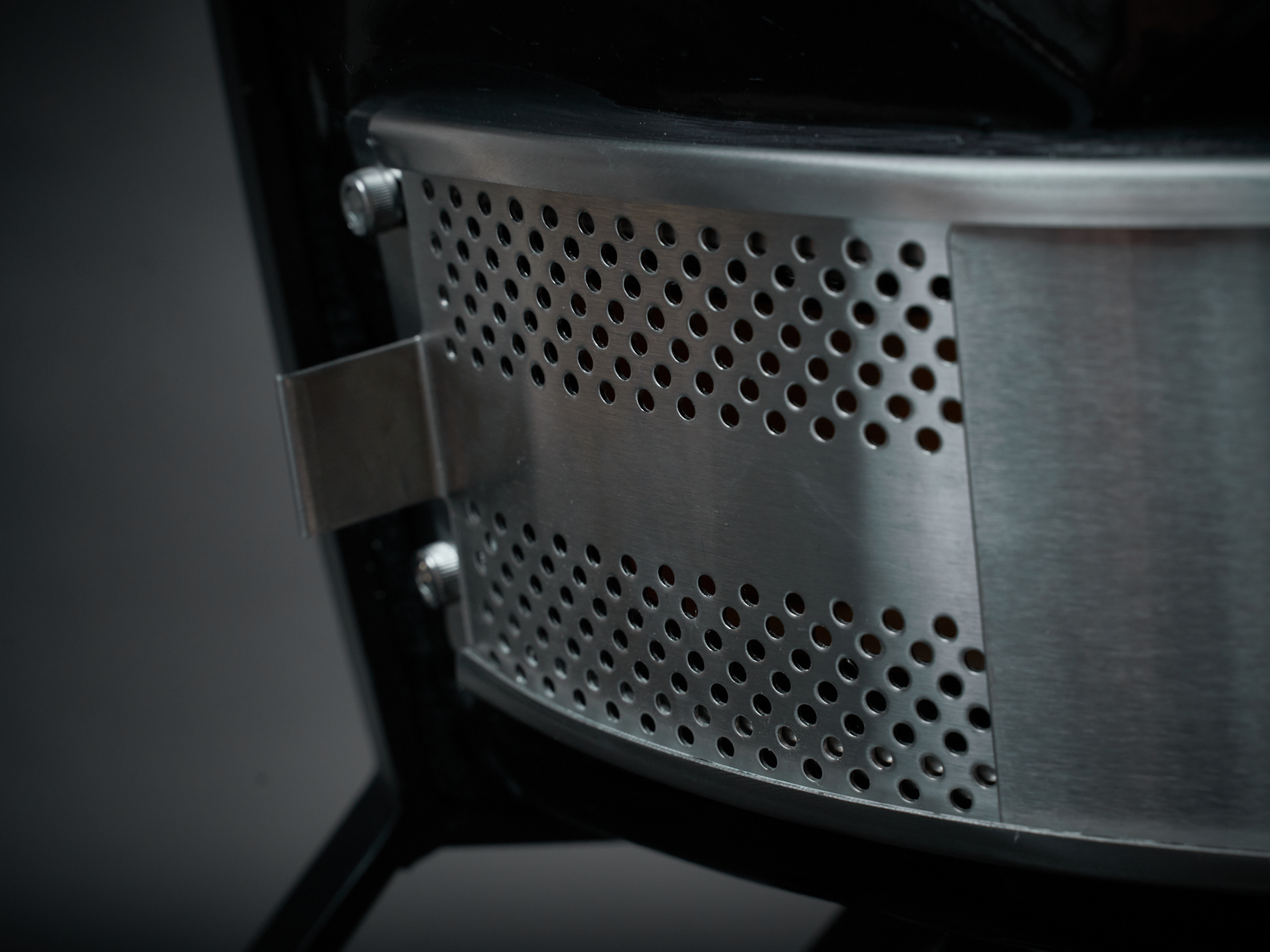 High-quality, two-way, upper valve allows effective control of temperature and air flow. The fully open function maximises airflow circulation for extremely high heat cooking at high temperatures on charcoal grate or pizza for baking. The KamadoClub PRO 2 PREMIUM top valve is made of corrosion-resistant materials, so it will always look flawless, even when used in extremely harsh conditions, for example, when raining and snowing.
