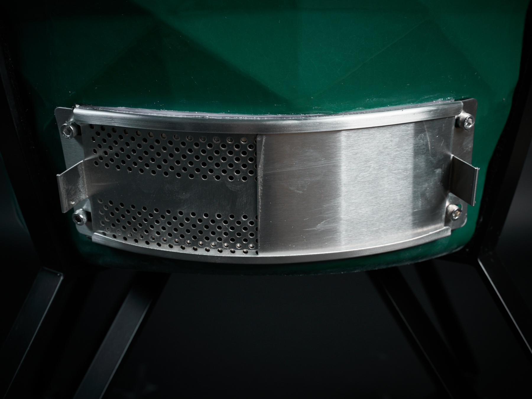 High-quality, two-way, upper valve allows effective control of temperature and air flow. The fully open function maximises airflow circulation for extremely high heat cooking at high temperatures on charcoal grate or pizza for baking. The KamadoClub top valve is made of corrosion-resistant materials, so it will always look flawless, even when used in extremely harsh conditions, for example, when raining and snowing.